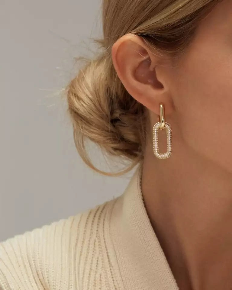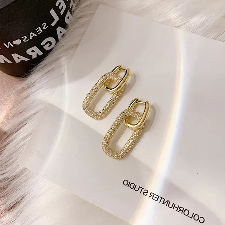 Aretes dobles en baño de oro 22K y circonias blancas.