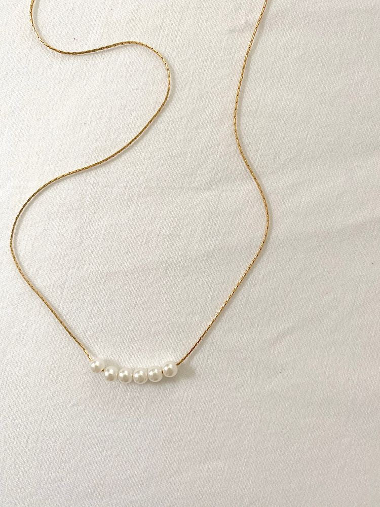 Collar delicado elaborado en mini Perla natural y acero inoxidable calidad con baño de oro Premium.