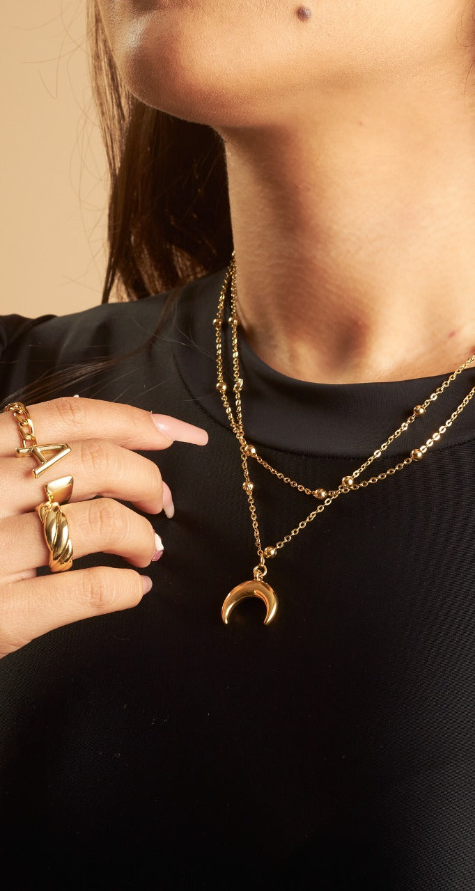 MATERIAL: Cadena modelo Donna en baño de oro 22K, Dije chapado en oro.