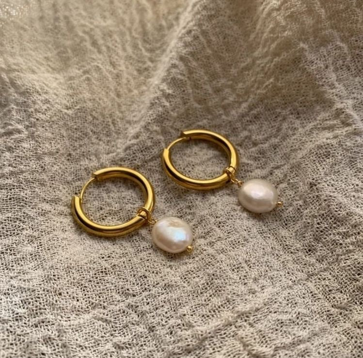 Mini Arracadas de acero Inoxidable con perlita natural de río.