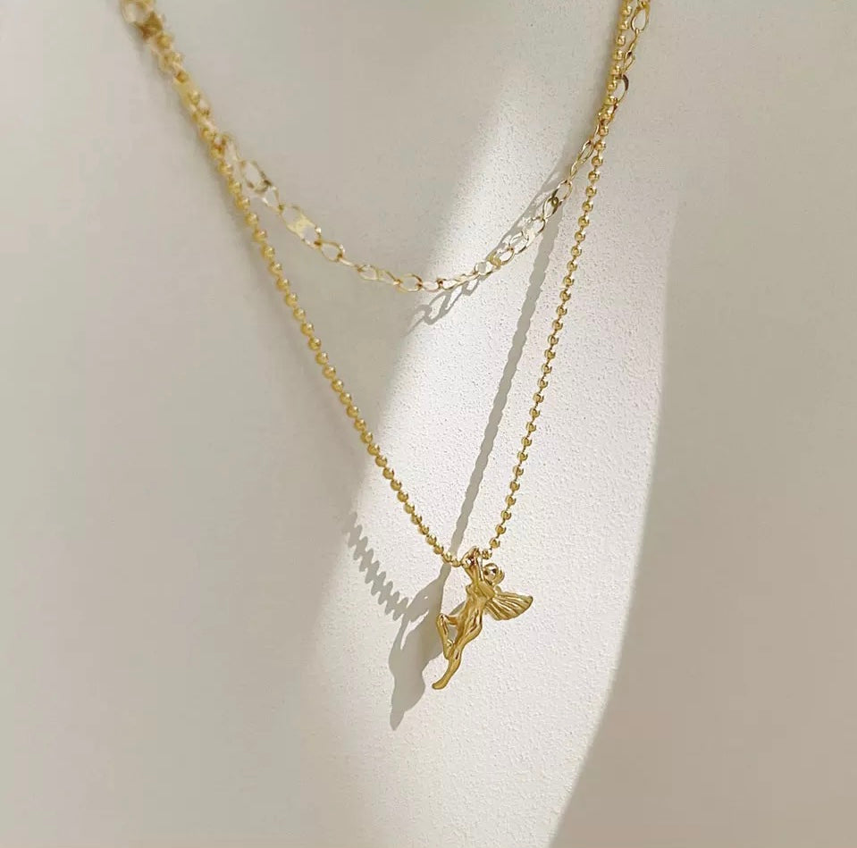MEDIDA: cadena corta 37 + 5 cm, cadena larga 45 + 5 cm, dije 2 cm.
